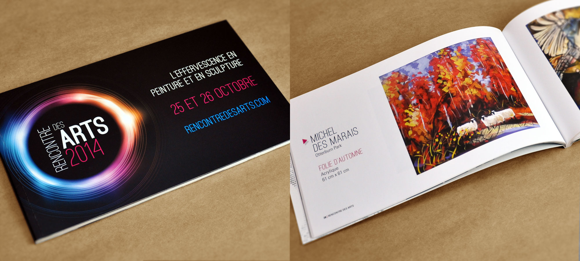 Développement visuel de la programmation et d’outils promotionnelles pour la coopérative artistique art[o]. Création de l’identité visuelle pour La rencontre des arts.